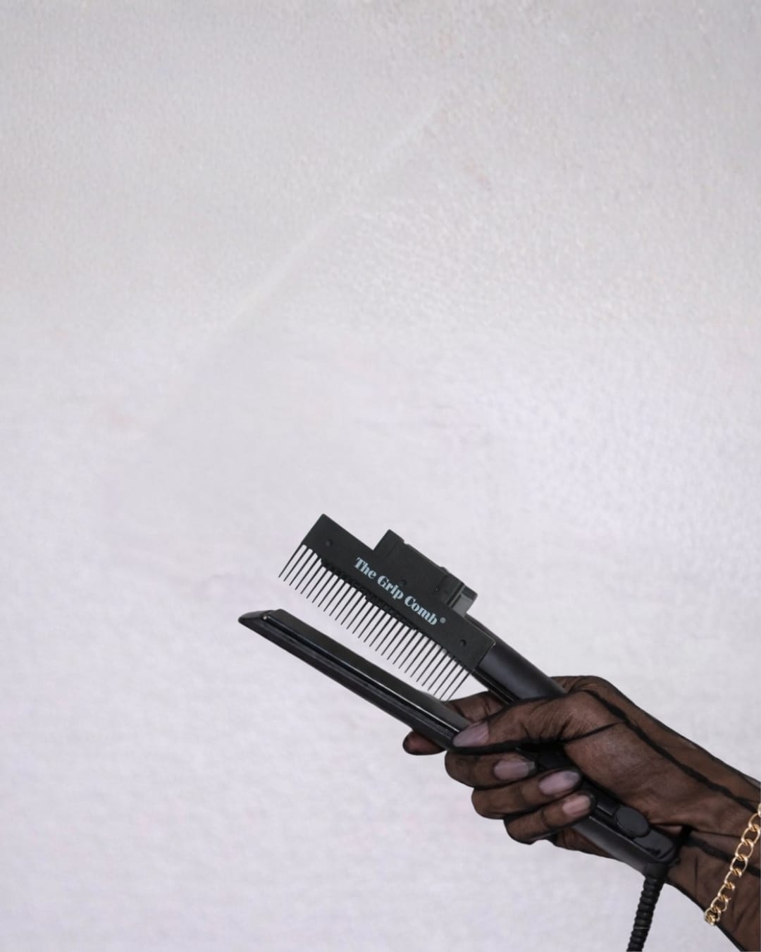 The Grip Comb PRO is a detachable flat-iron attachment designed to guide hair evenly through heat, helping you achieve smoother, shinier silk presses with fewer passes.