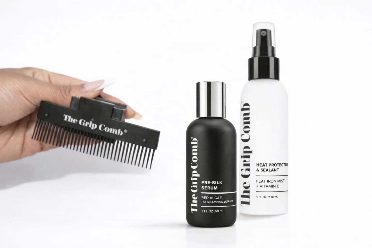Getting your silk press bone-straight doesn’t have to be complicated. If you’re using The Grip Comb, here’s a simple breakdown of how to get that smooth, glossy finish—without the stress.